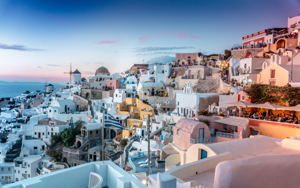 - Overnight stops in Santorini and Mykonos